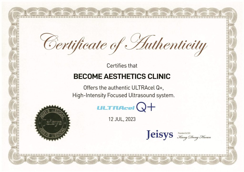 We are using Medical Grade Authentic Ultracel Q+ HIFU that is FDA and HSA approved for face lifting and skin rejuvenation.